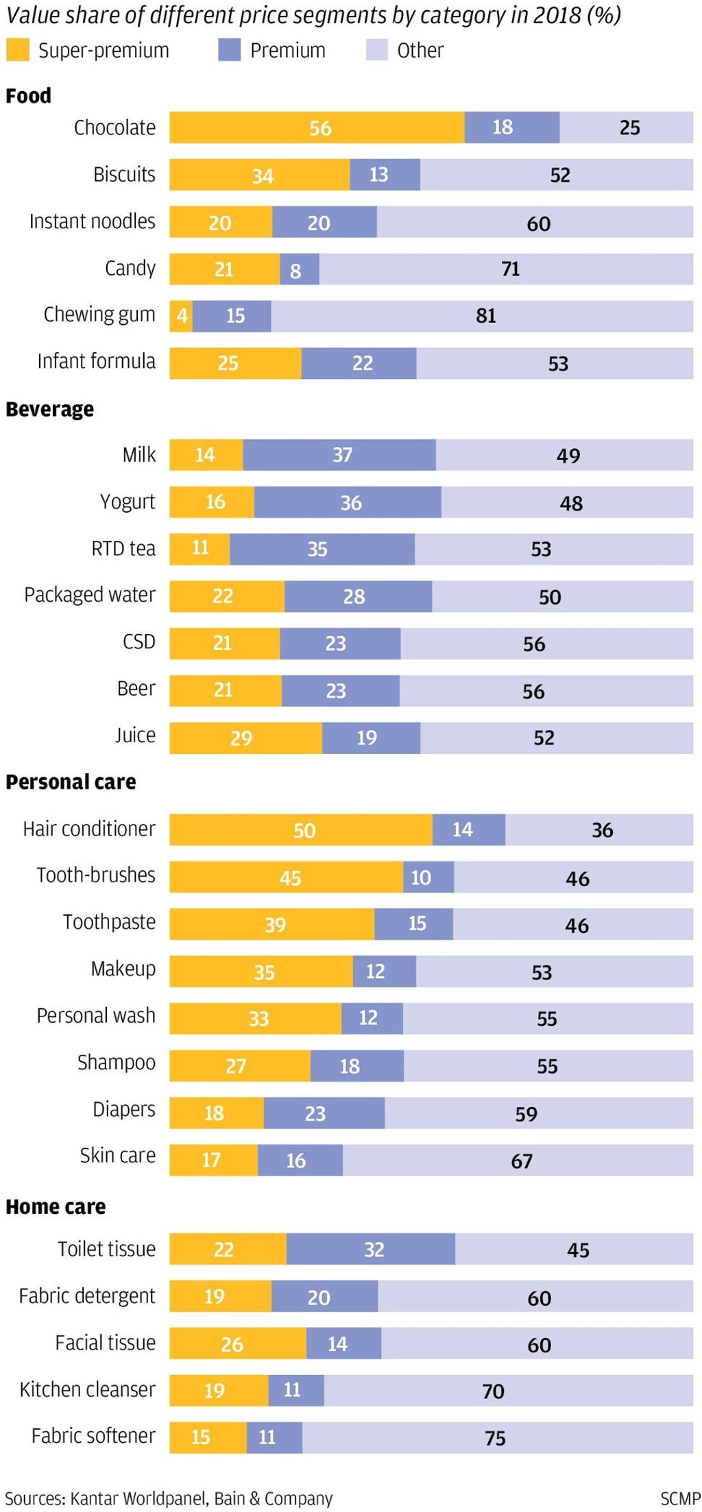 The shift in spending by China’s expanding middle class towards more expensive, premium goods has led to a large increase in sales of these and other items, the firm said in a report based on research by Kanta Worldpanel China, which tracks of 40,000 Chinese households’ spending.