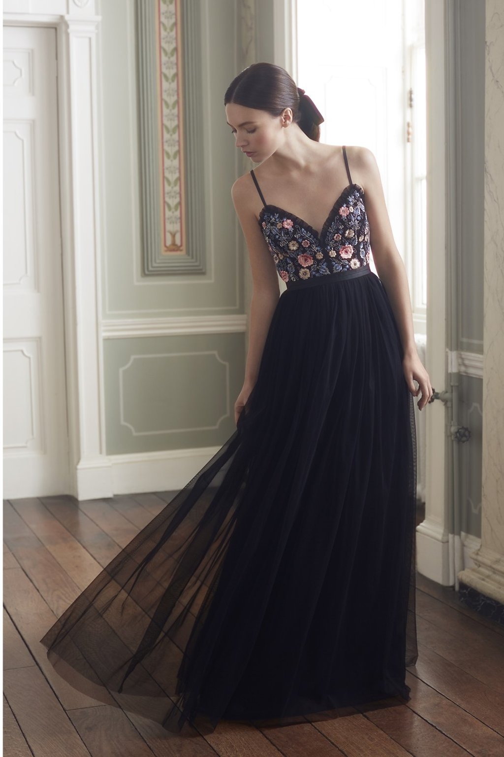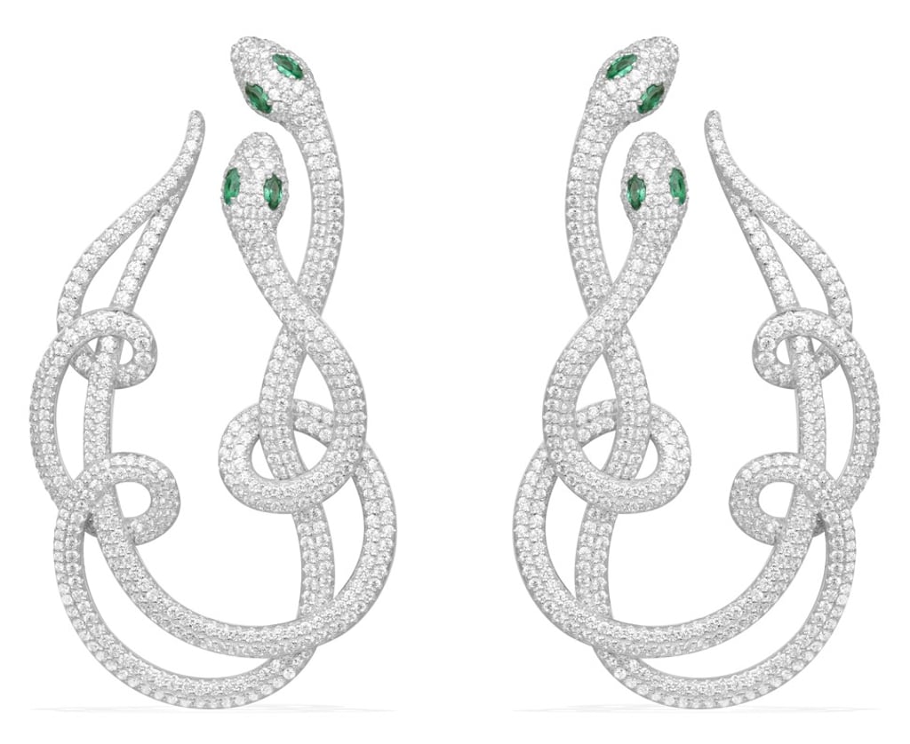 Make a statement with the serpentine earrings from APM Monaco and the embroidered dress by Needle & Thread