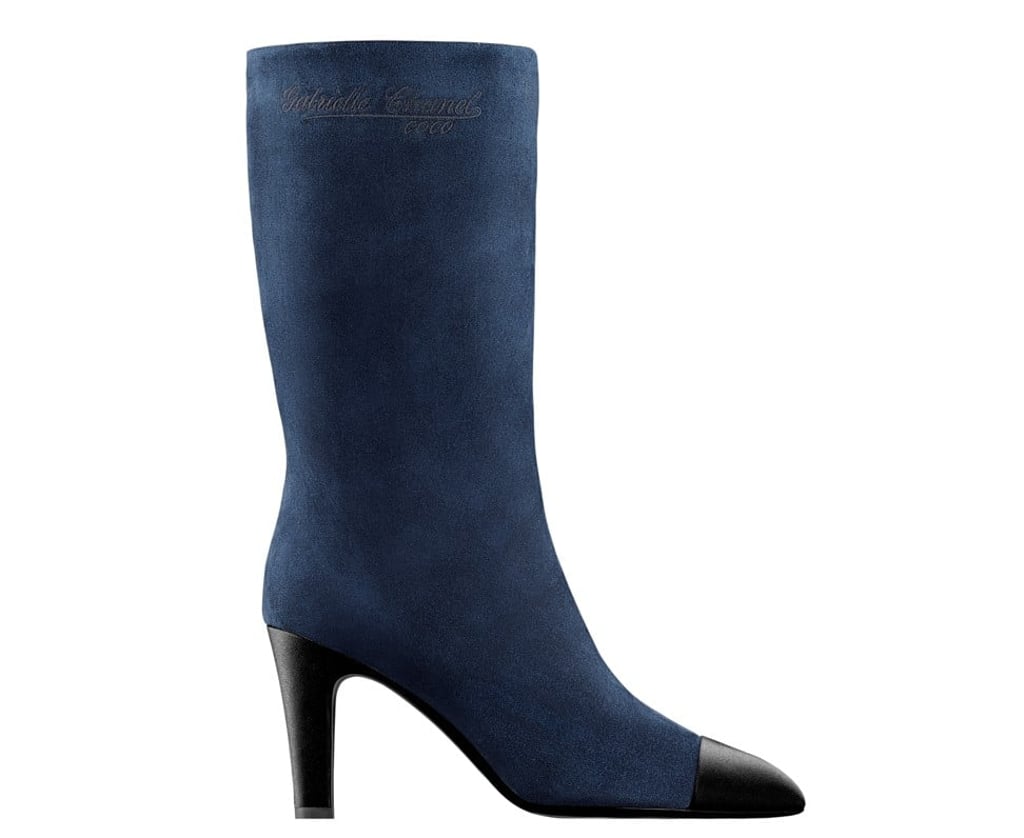 Step out in Chanel’s navy suede boots and enjoy the envious glances that come your way