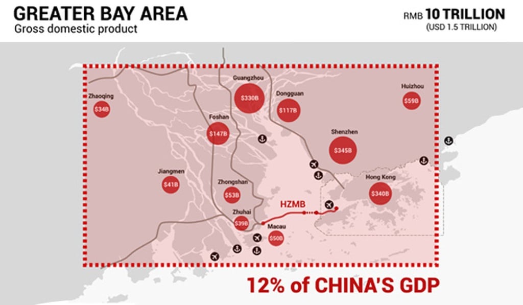 2. The Greater Bay Area occupies less than 1 per cent of China’s land area but contributes 12 per cent of GDP