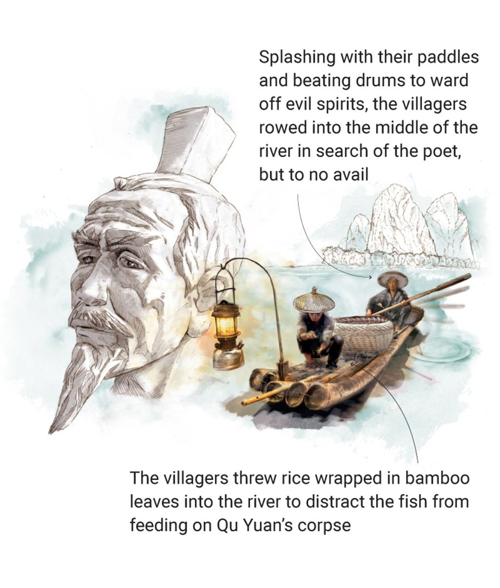In 278BC, in the ancient Chu kingdom during the Warring States Period, poet and government minister Qu Yuan committed suicide by drowning himself in the Miluo River in protest of prevalent corruption among officials.