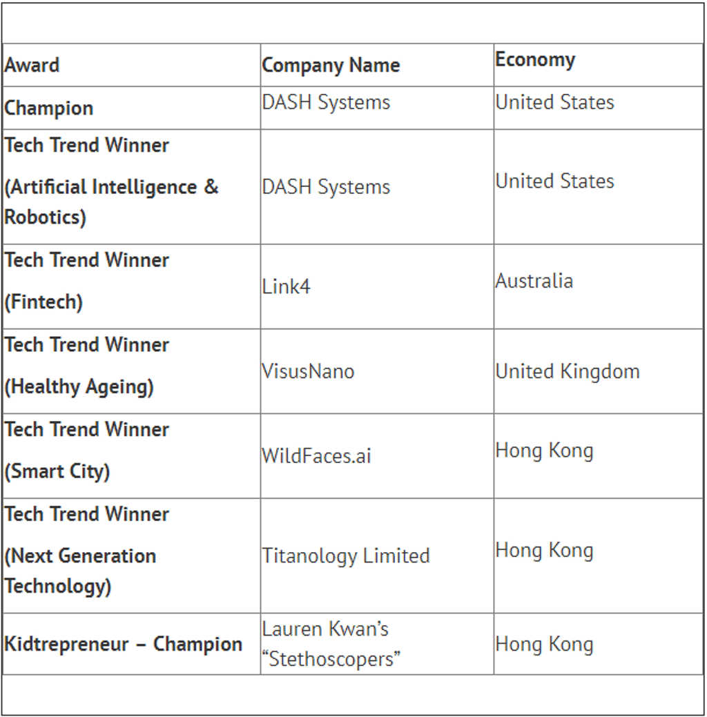 The competition attracted more than 1,000 entrepreneurs, venture capital firms, angel investors, industry players, incubators, accelerators and tech disruptors together. One hundred start-ups from all over the world with a focus on five technology areas: Artificial Intelligence & Robotics, Fintech, Healthy Ageing, Smart City, and Next Generation Technology were selected from 591 entries.