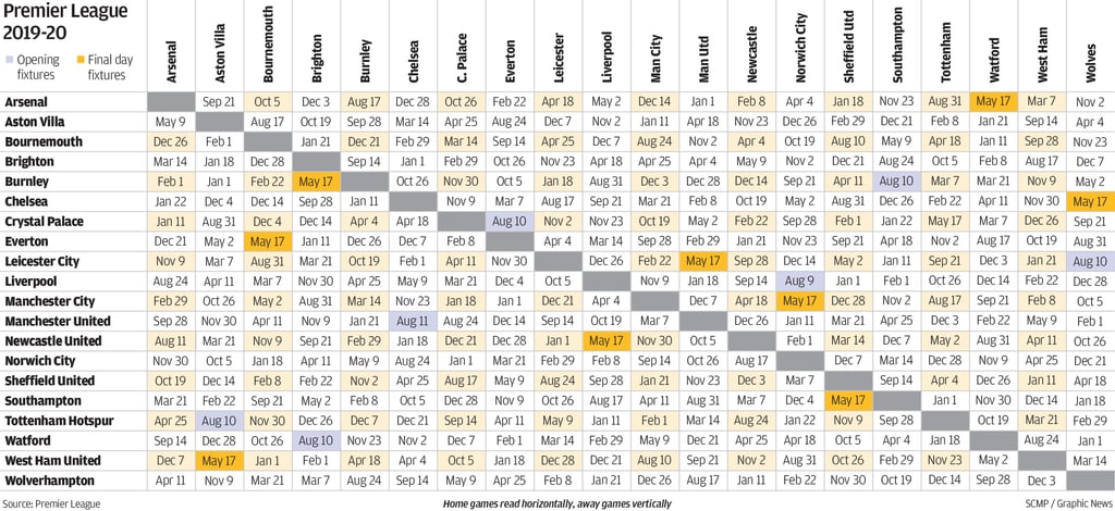 - Schedule grid for each Premier League team as Manchester City prepare to make it three English league titles in a row